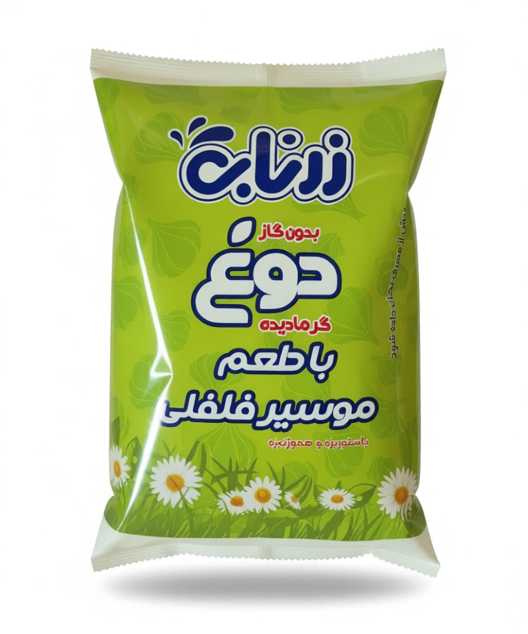 وغ نایلون ۹۰۰ میلیلیتری زرناب با طعم موسیر فلفلی، تهیهشده از شیر تازه و ماست طبیعی. این نوشیدنی خنک، ترکیبی بینظیر از عطر خوش موسیر و تندی دلنشین فلفل است که طعمی متفاوت و دلچسب را برای شما رقم میزند.